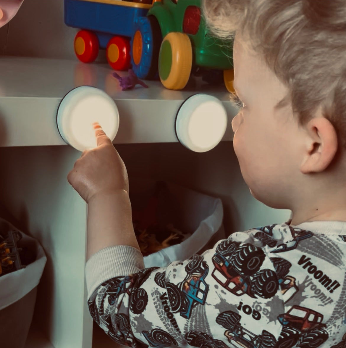 Jag skapade Rutinisen för att få morgonen hemma att bli lugnare och mindre stressfull. Med hjälp av lampor och symboler guidar den barnet genom rutinen – pyjamas , borsta tänderna, duscha och sova.